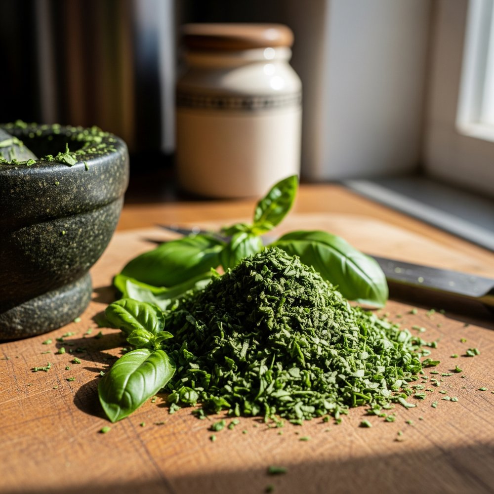 Fragrant and versatile, ground basil leaves bring a warm, slightly sweet flavor that pairs beautifully with tomatoes, garlic, and olive oil. A pantry staple for Italian-inspired cooking, it blends smoothly into sauces, soups, dressings, and marinades, offering an easy way to add fresh herbal character without the need for chopping.