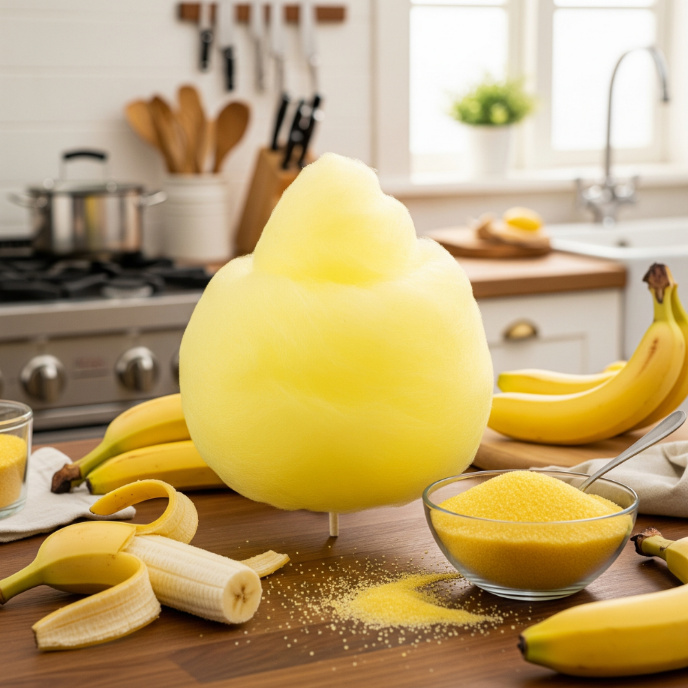Applications: Compatible with standard cotton candy machines, this product allows you to spin soft, banana-flavored cotton candy in just minutes. Simply load the sugar into the machine, and collect the delicate strands as they form to create a fun and flavorful treat.