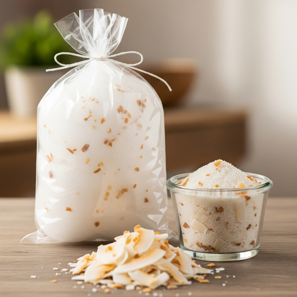 Applications: Coconut Nutty Cotton Candy Floss Sugar is intended for use in professional cotton candy machines. Simply add the sugar to the machine, and within moments, it spins into delicate strands of cotton candy infused with tropical coconut and subtle nutty notes. Ideal for carnivals, parties, or commercial sales, it provides a memorable flavor that appeals to both children and adults.